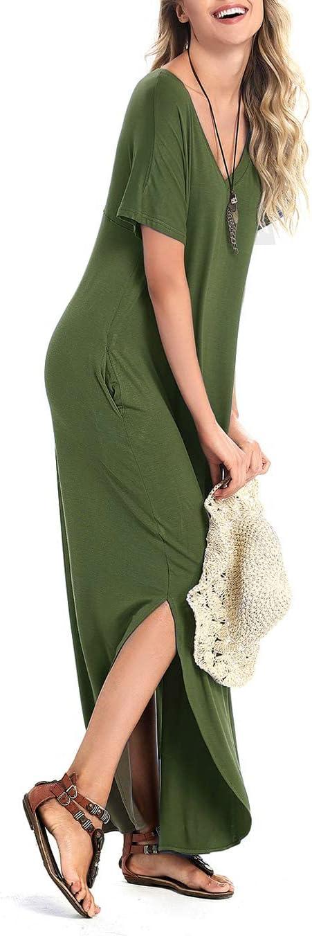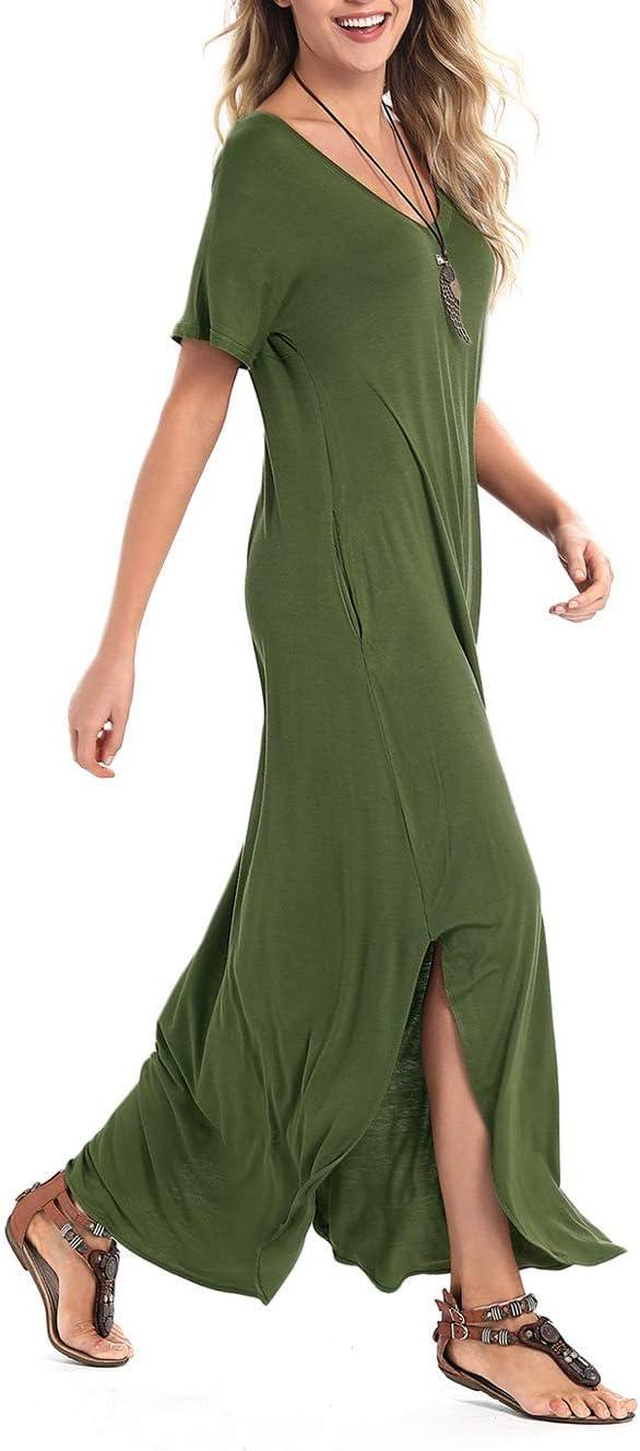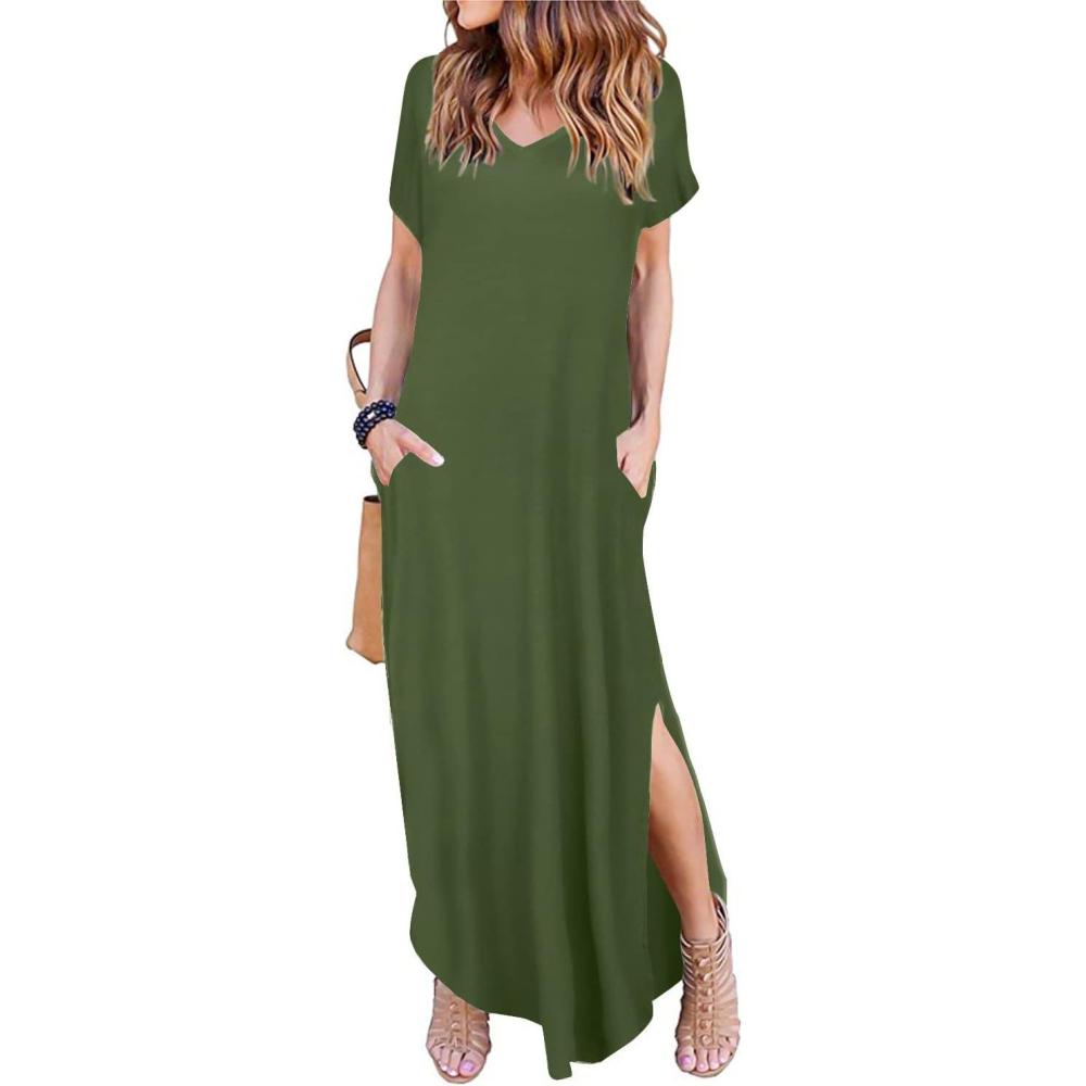 Be the first to review “Arolina Women’s Summer Maxi Dress Short Sleeve V Neck Casual Loose Long Beach Split Dresses with Pockets(Army Green)” Cancel reply